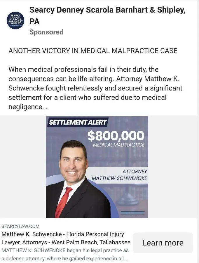• Client Testimonial & Case Result Ads: Showcase real legal victories and client experiences to build trust (e.g., “John received $1.5M after his accident. See how we fought for him.”)